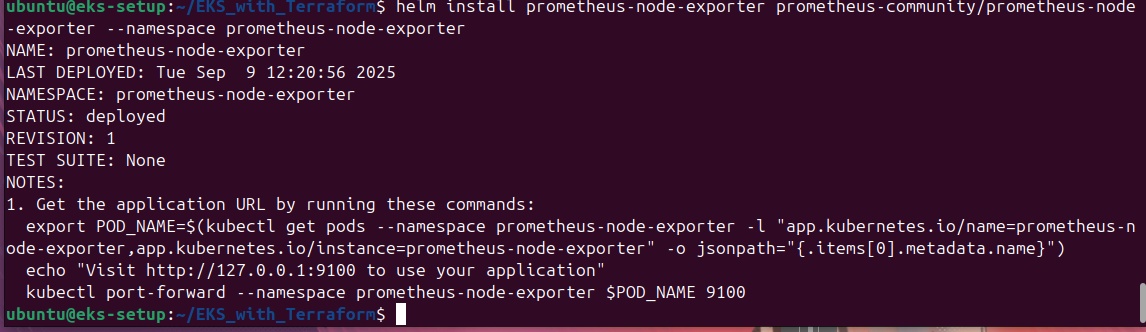 Additionally, will install the node exporter using Helm to collect metrics from kubernetes cluster nodes.
